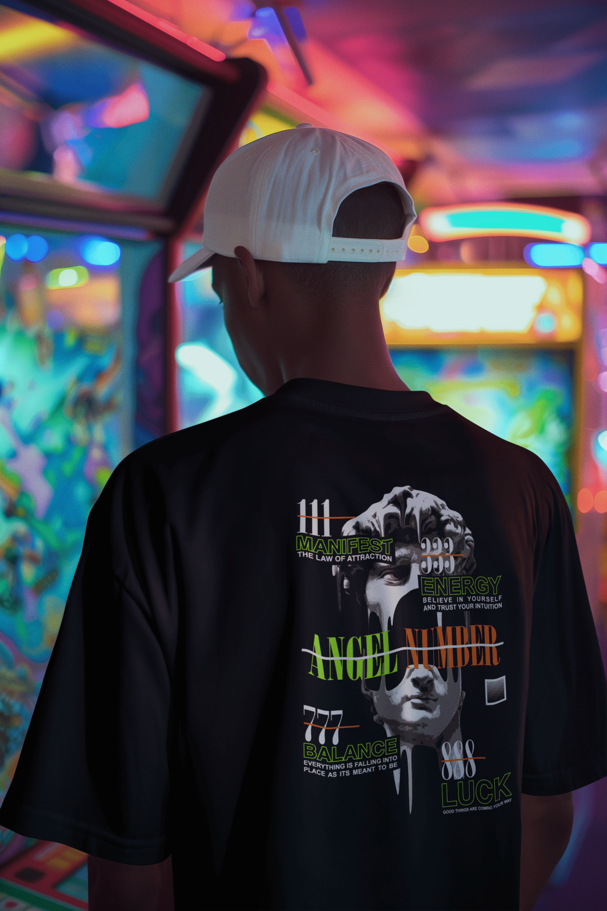 Angel Number Oversized Black Printed T-Shirts CrossX